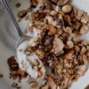 Granola wypiekana jest na płatkach owsianych z certyfikatem BIO, co stanowi gwarancję najwyższej jakości i dbałości o środowisko.