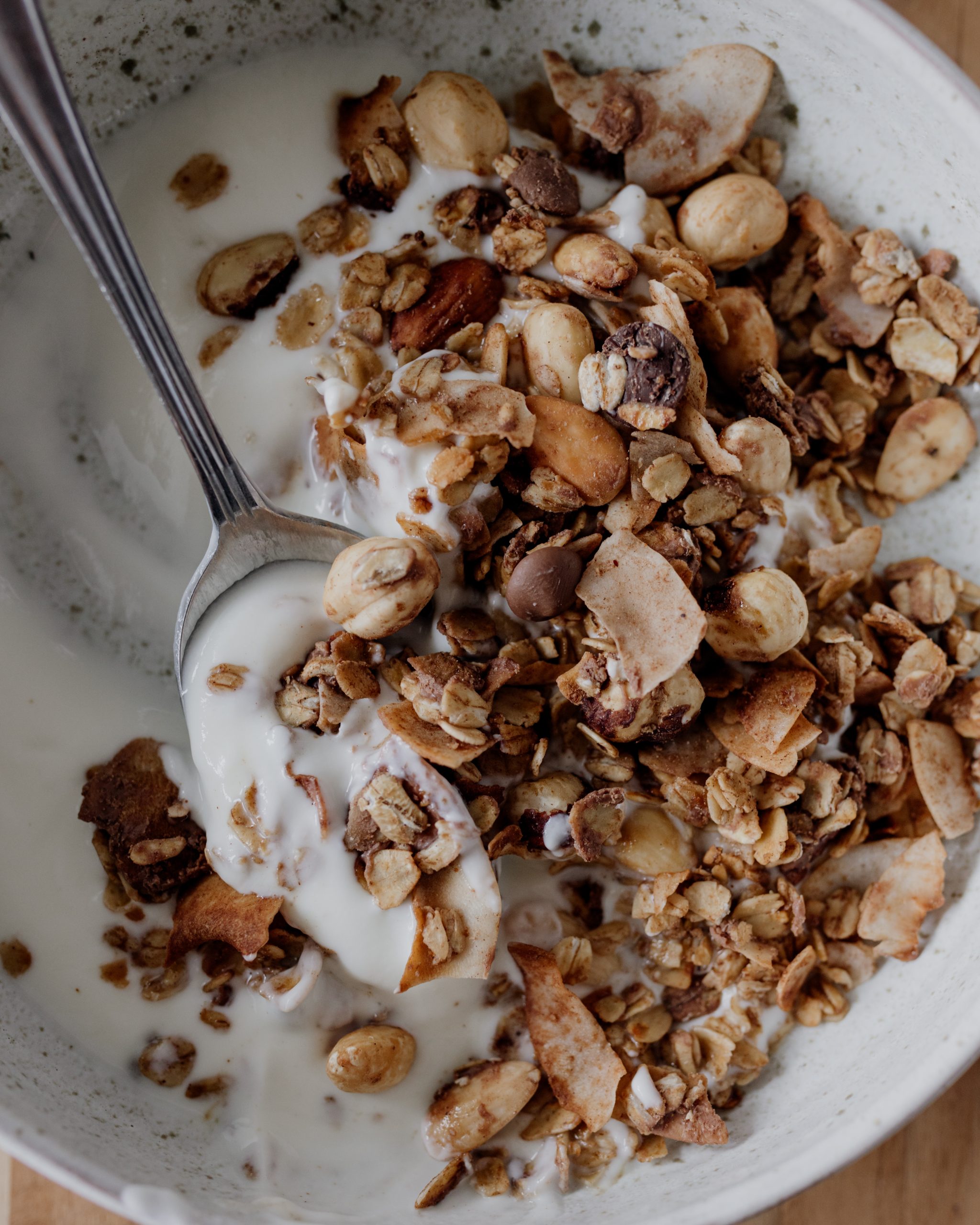 Na gorącą granolę wykładamy kawałki belgijskiej czekolady, która roztapia się między orzechami i powoli zastyga, tworząc niezapomniane doznania smakowe.